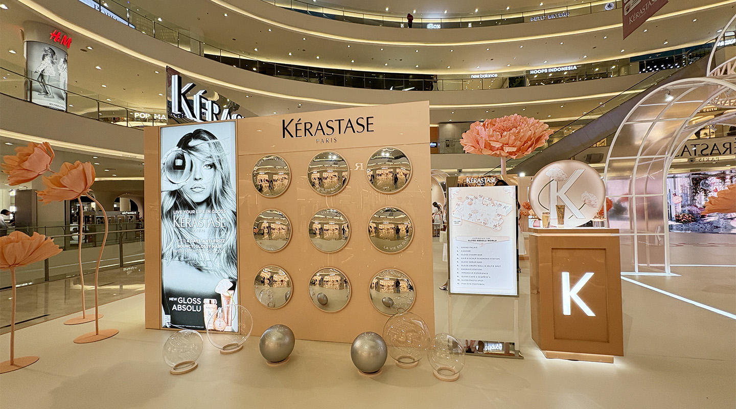 Kérastase Pop-up experience “The World of Gloss” hadir di Main Atrium Senayan City untuk mengajak pengunjung merasakan rangkaian produk Gloss Absolu, Personalisation Bar hingga memahami kebutuhan rambut melalui Hair Diagnosis Area.