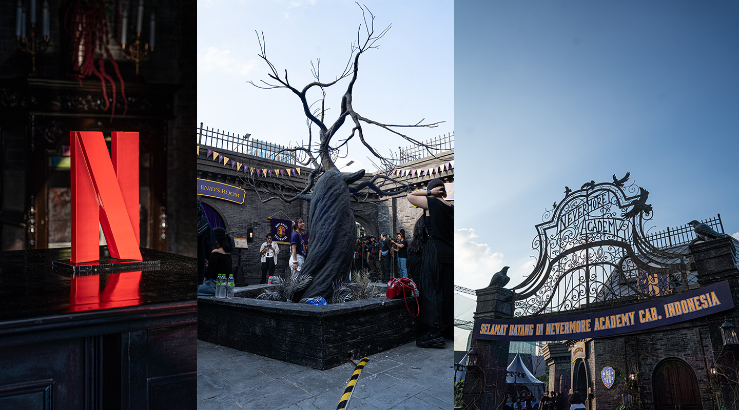 Netflix kembali menghadirkan serial musim kedua dari Wednesday yang misterius. Dan, Sekolah Nevermore Academy tempat karakter Wednesday Addams bersekolah kini hadir di Jakarta, yang berlokasi di area The Space, Senayan City.