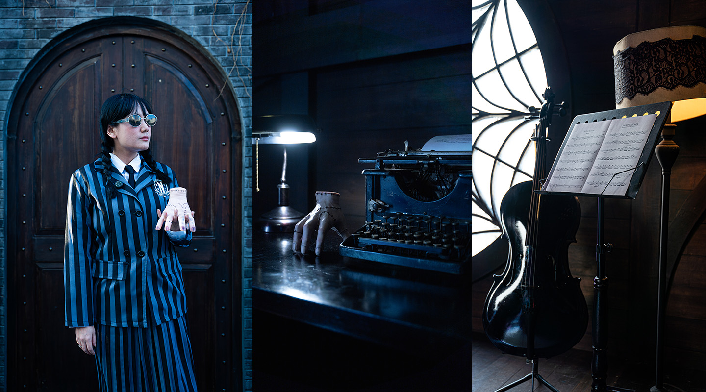 Beragam misteri, menanti untuk dikuak di setiap area Nevermore Academy. Beberapa area diantaranya Ada kamar asrama duo sahabat Wednesday dan Enid dengan kepribadian yang bertolak belakang: pernak-pernik berwarna-warni ceria dan poster seru versus meja besar berwarna gelap ditemani mesin tik kuno dengan selembar kertas berisi curahan hati Wednesday dan alat musik cello miliknya.