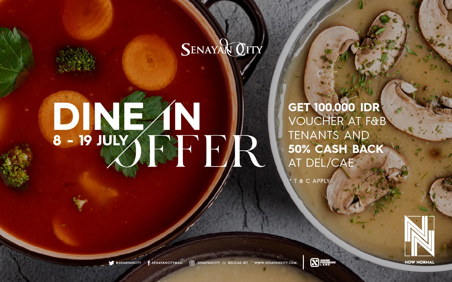 Spend min Rp.250.000 at F&B tenants, customer will get cashback Senayan City voucher worth Rp. 100.000 for the first 20 customer (voucher can be redeemed at Customer Service concierge, Main lobby, Ground Floor)