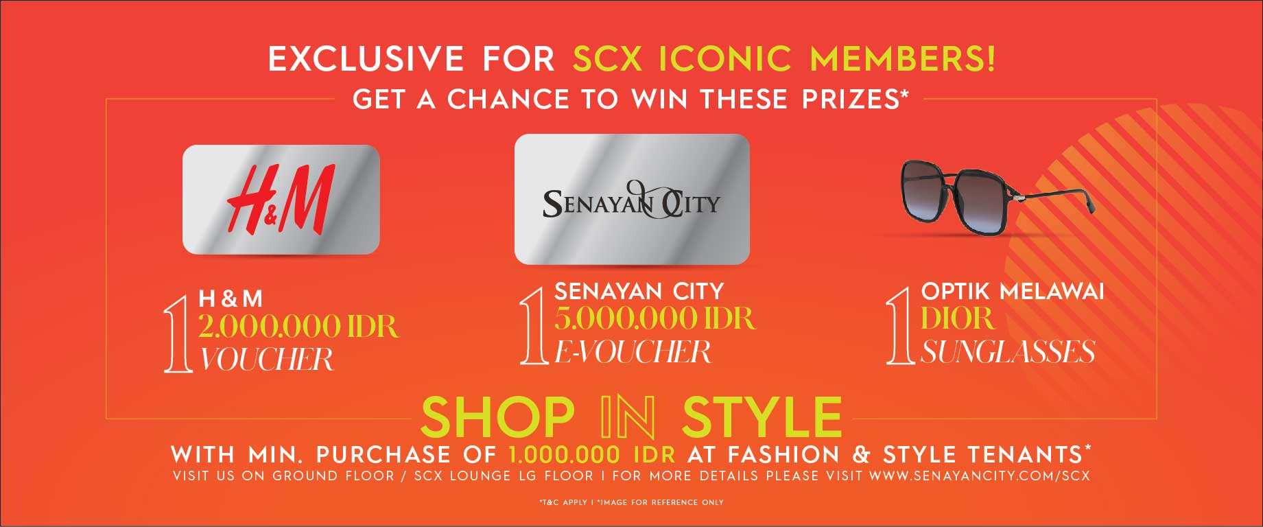 3. SCX Member yang menukarkan struk pembelanjaan di brand fashion & style (kecuali di tenant-tenant bertanda *) pada 17 Juli - 2 Agustus 2020 selama periode berlangsung dengan minimal pembelanjaan senilai 1,000,000 IDR (satu juta rupiah) mendapatkan 1 (satu) nomer undian dan berlaku kelipatan. Berikut hadiahnya: