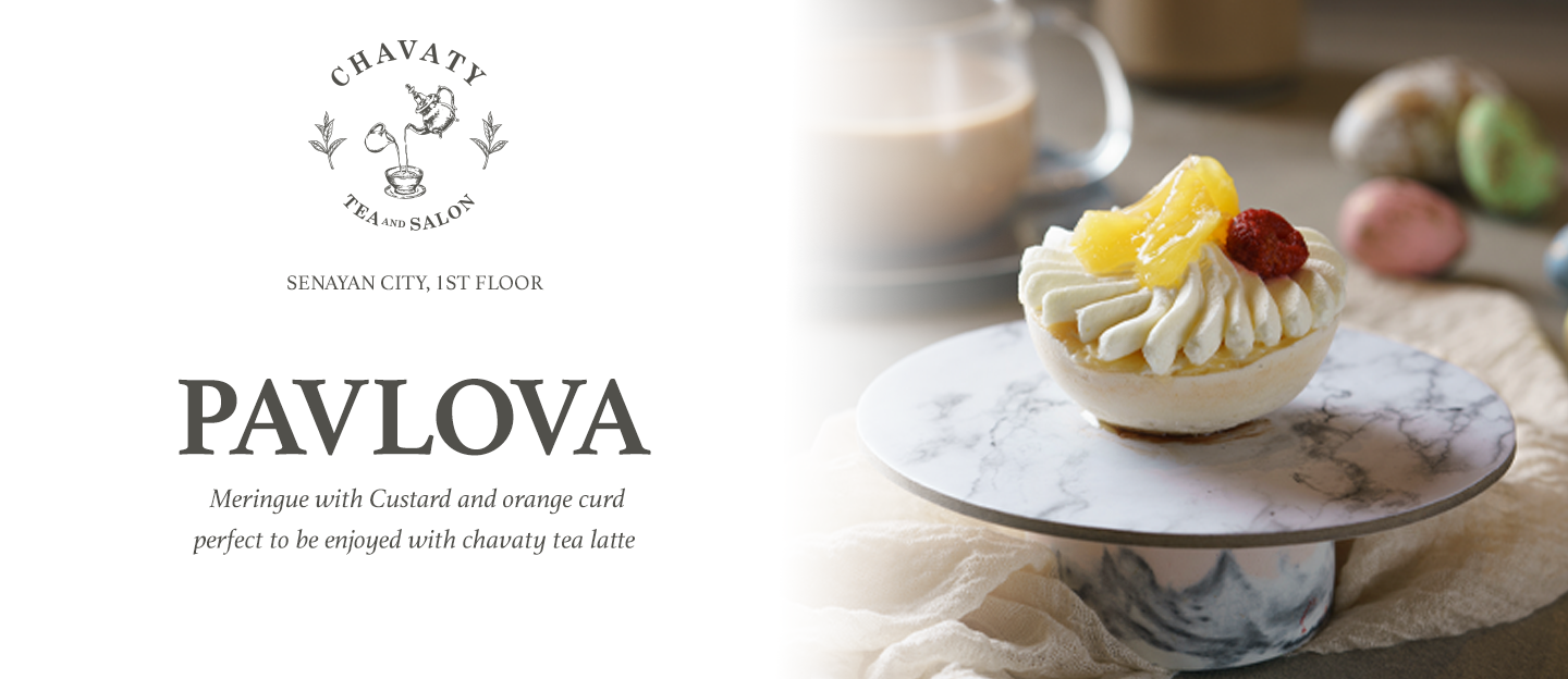 Made from Meringue with custard and orange kurd, perfect to be enjoyed with chavaty Tea Latte. A texture lovers dream come true, crisp crust and soft light inside in one single bite.