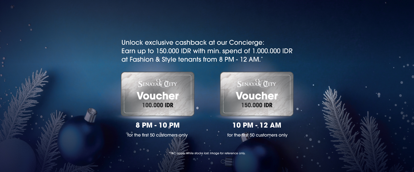 2. Claim Your Cashback: After completing your purchase, head to our concierge desk to claim your cashback of up to 150,000 IDR. �