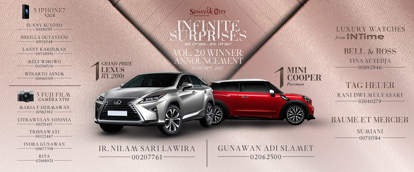 - Manajemen Senayan City berhak untuk membatalkan kemenangan, apabila didapati / ditemukan kecurangan dalam bentuk apapun.