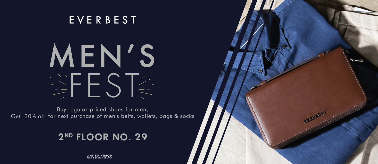 It's raining men! Buy regular-priced shoes for the gents and get 30% off on next purchase of men's belts, wallets, bags & socks. #everbest #mensfest.