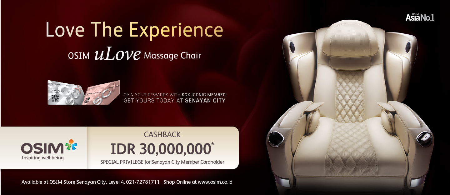 Cashback IDR 30,000,000 for OSIM uLove massage chairs until 28 February 2018.
