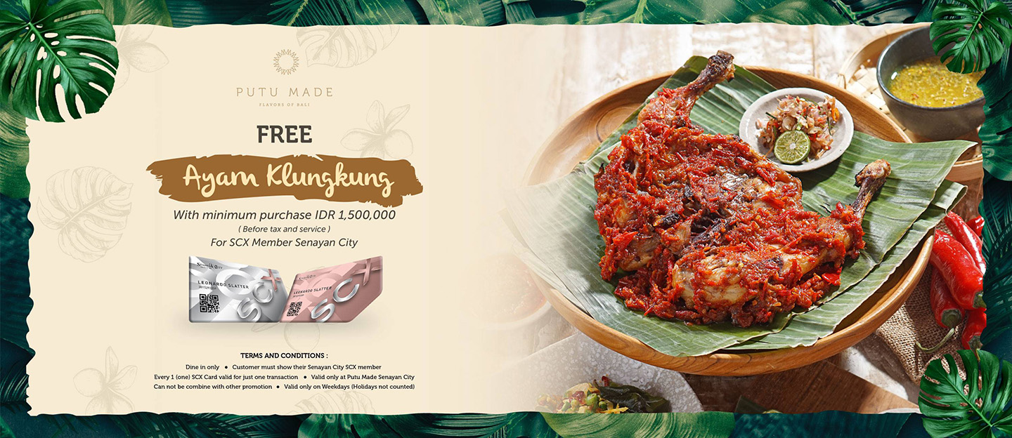 FREE Ayam Klungkung at Putu Made, 5th floor with min. purchase Rp. 1.500.000 before tax and service with terms & condition as follow: