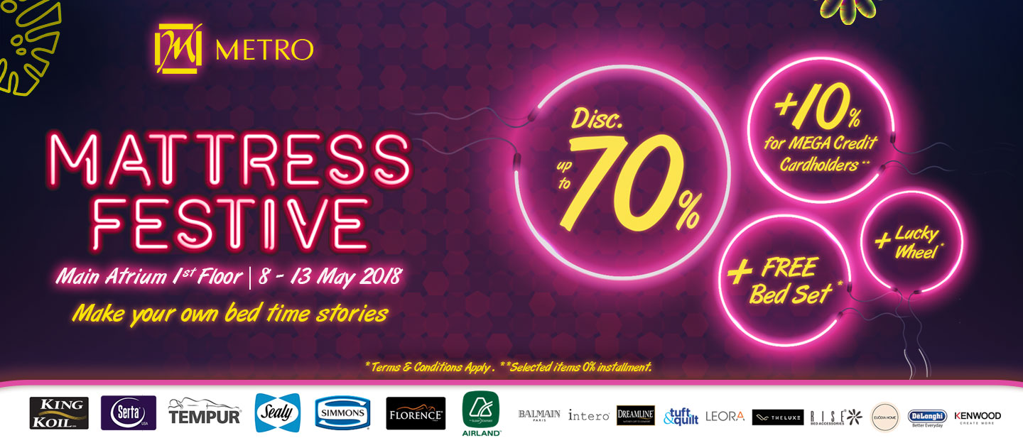 Visit our mattress fair from high quality brands with discount up to 70% off and other offers at Main Atrium Senayan City 1st floor