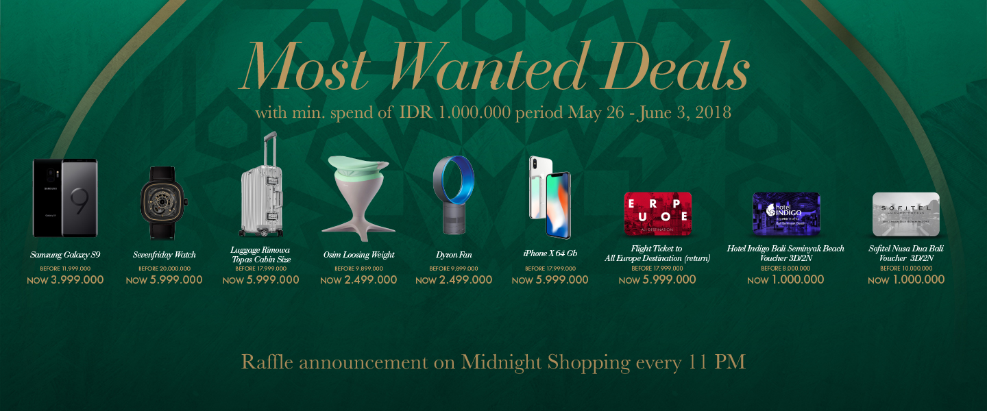 - RAFFLE MOST WANTED DEALS 1 – JUMAT, 1 JUNI 2018 hingga pukul 23.00 WIB