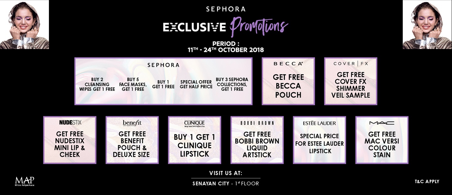 Visit SEPHORA store at 1F, Senayan City to enjoy #SEPHORAElectricBeauty exclusive promo starts 11-24 October 2018