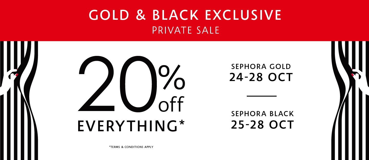 Enjoy 20% discount exclusively for our privileged Sephora Beauty Pass Black & Gold Members during Private Sale!