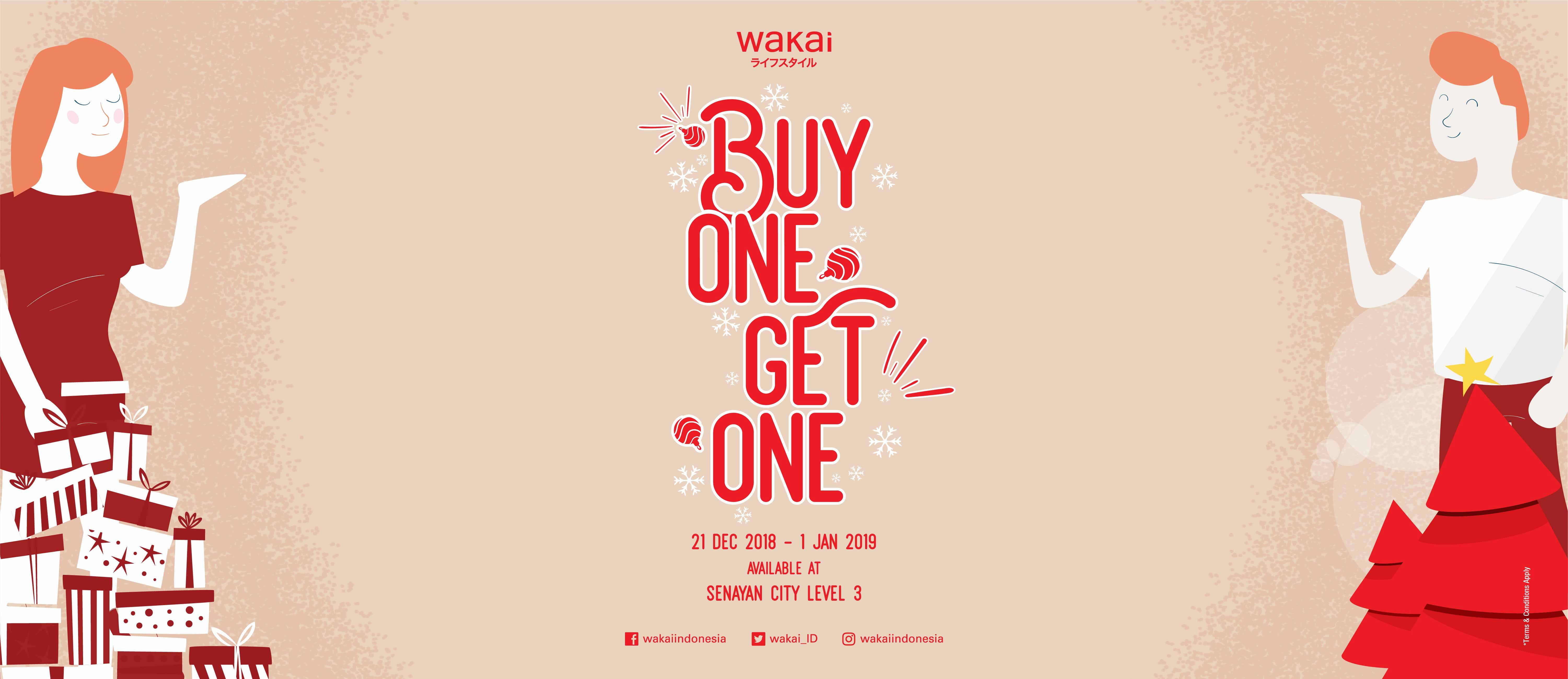 Celebrate the Holiday sesason with WAKAI and enjoy Buy 1 Get 1 free from December 21st - January 1st 2019 , at Wakai Senayan City Mall Lt, 3rd . Happy Holiday !