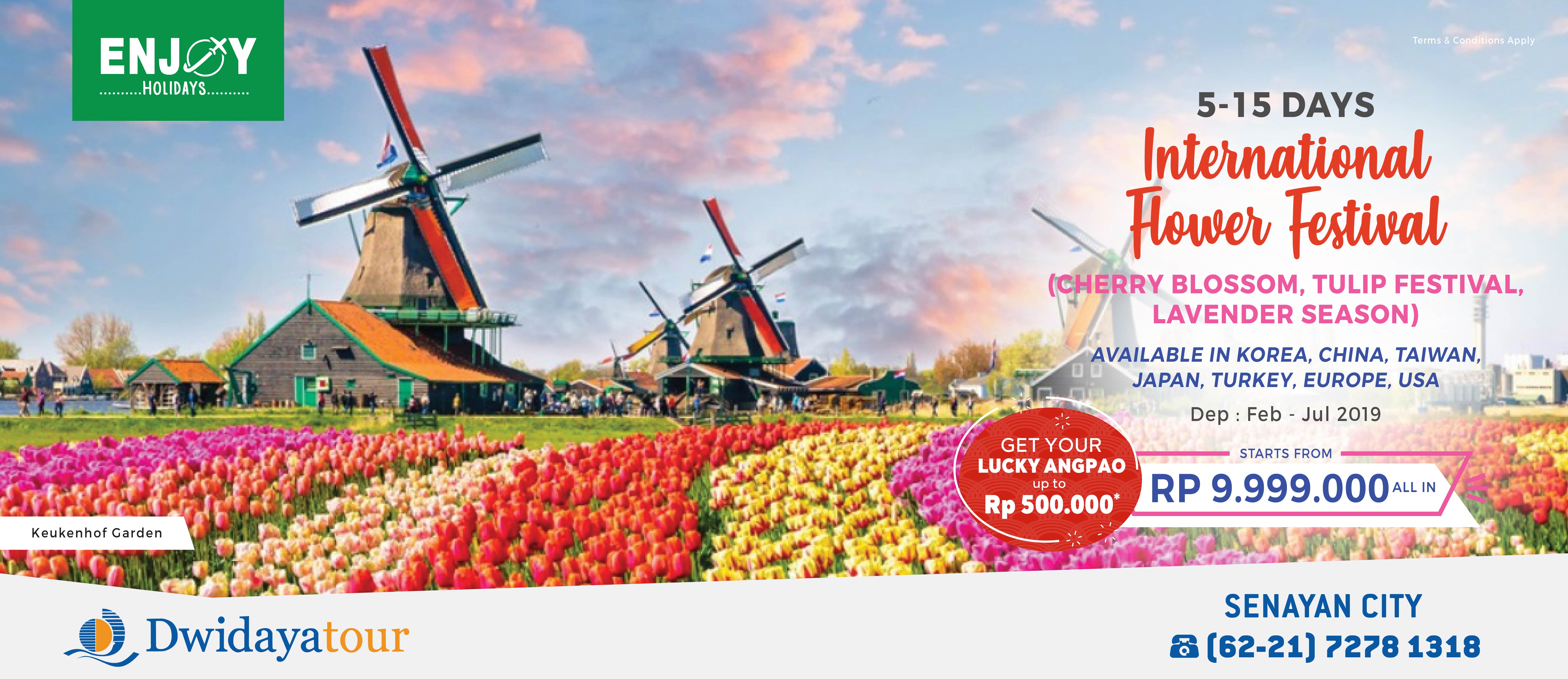 Let Spring begin! Get ready to experience the 2019 International Flower Festival. Enjoy your tour at the best prices start from 9,9 million and get your lucky angpao.