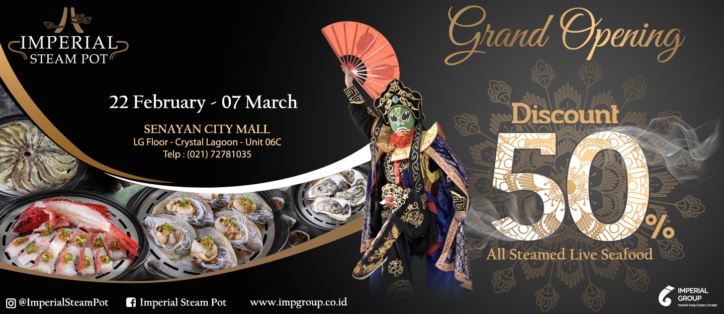 Come and celebrate our Grand Opening Imperial Steam Pot by Imperial Group with some exciting Changing Mask and Noodle Dance performances at Senayan City, LG Floor - Crystal Lagoon from 22 Feb - 7 March!