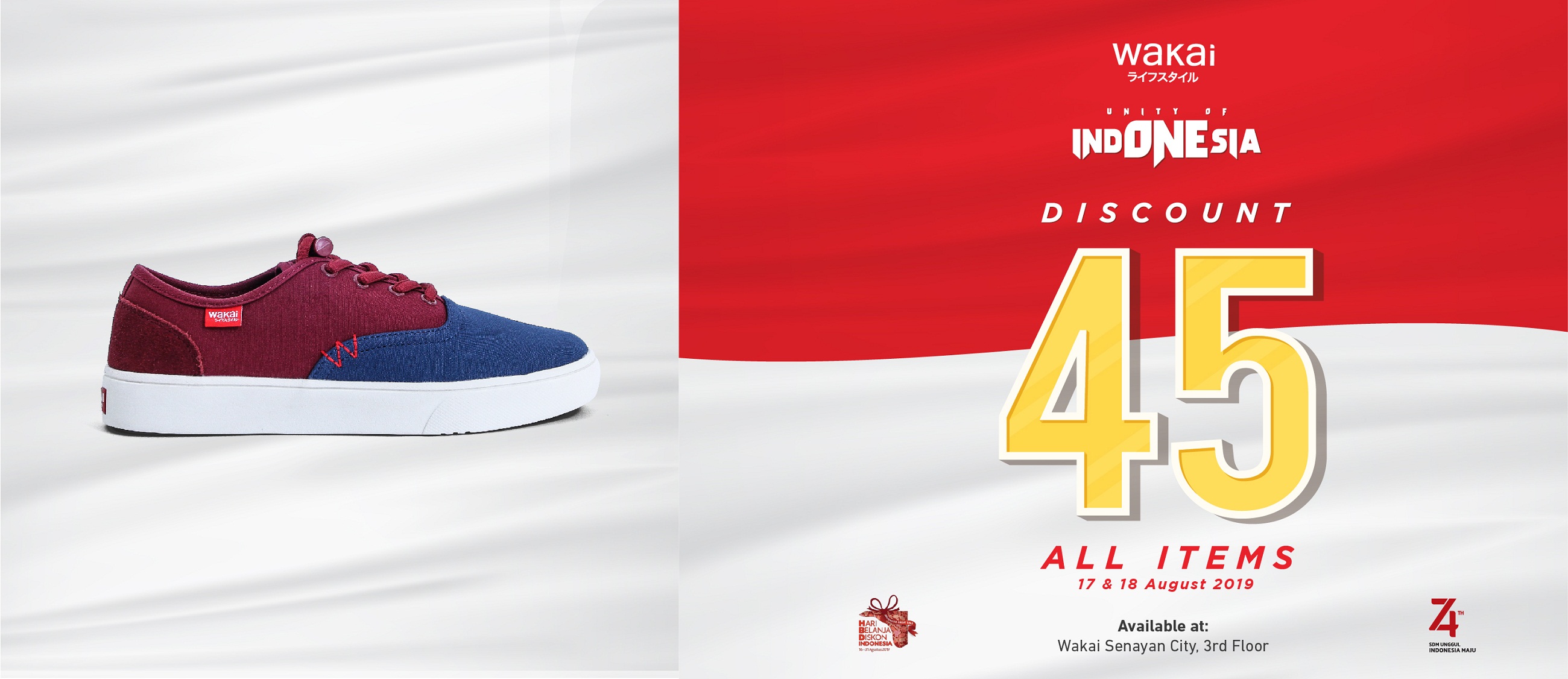 Unity of Indonesia! Let’s celebrate Independence month with special offers from Wakai disc 45% All Item, start from 17-18 August 2019. Spread the good news and happy shopping. Cheers