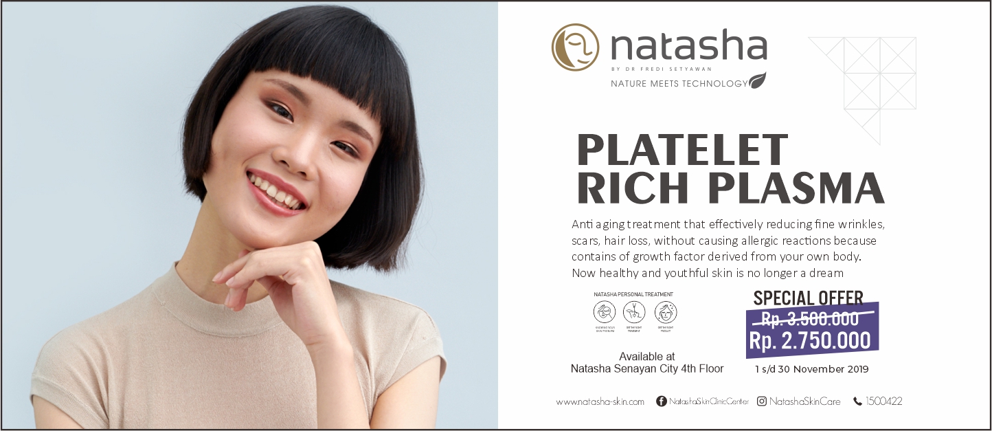 Do you have wrinkles on your face? Let's immediately do the anti aging PRP (platelet rich plasma) treatment and get a discount up to 750rb in November only at Natasha Skin Care Clinic Senayan City floor 4th. Good bye Wrinkles!