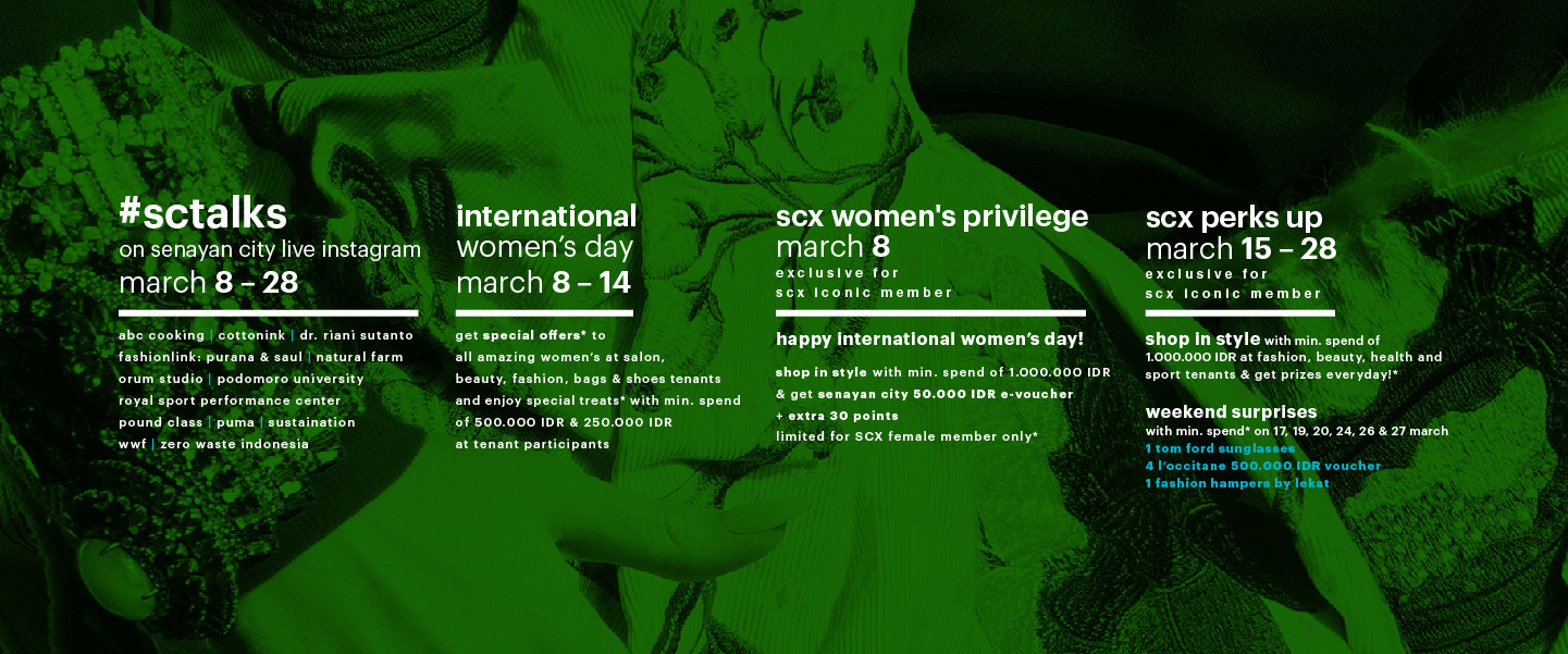 Shop in style with min. spend of 1.000.000 IDR & get: SENAYAN CITY 50.000 IDR E-VOUCHER + EXTRA 30 POINTS