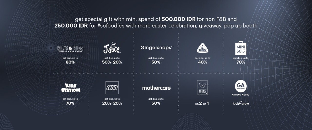 Celebrate Easter at Senayan City and get special gift* with min. spend of 500,000 IDR for non F&B and 250,000 IDR #SCFOODIES with more Easter Celebration, Giveaway, and Pop Up Booth.