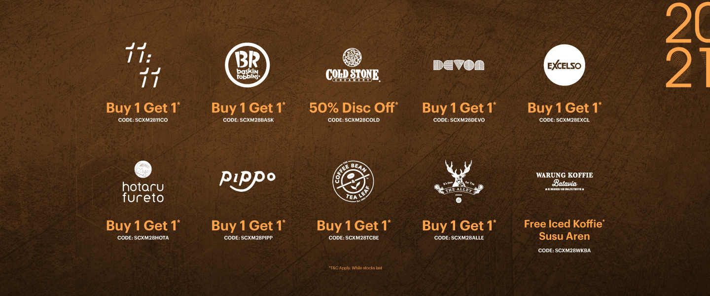 | -Buy 1 any food / beverage / dessert get FREE 1 Coffee (Americano, Coffee Latte, Cappuccino) and basic Tea |