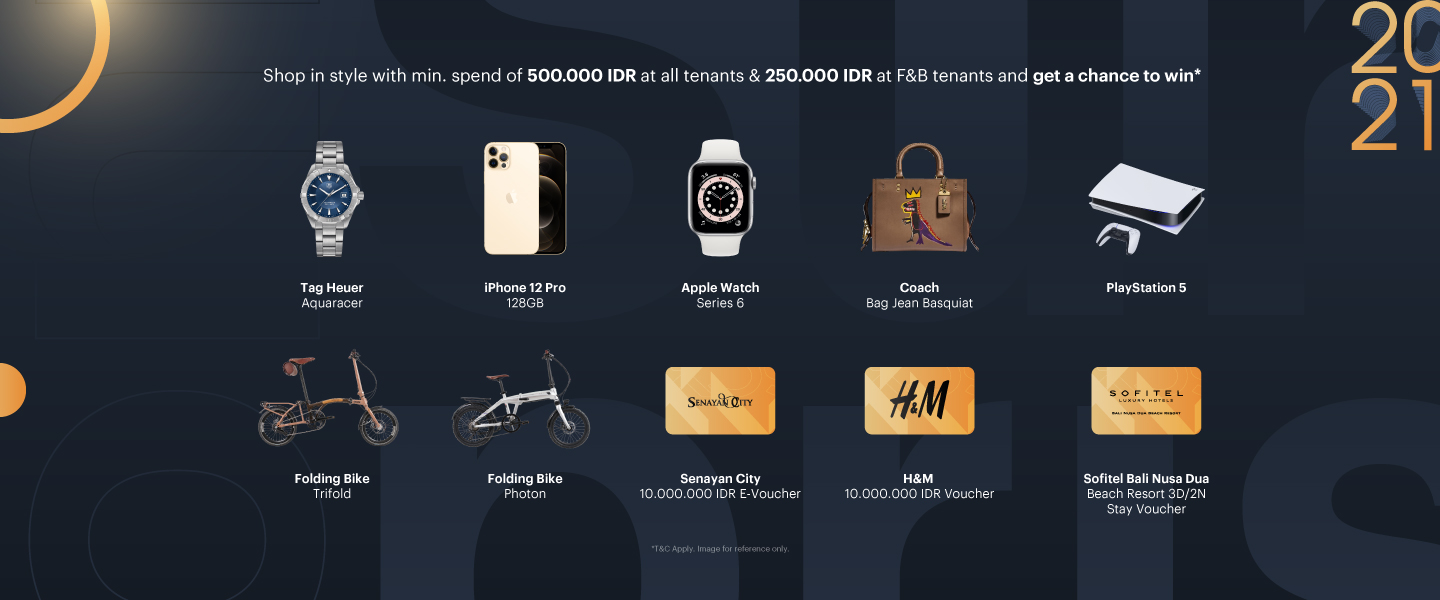 Shop in style with minimum purchase 500.000 IDR at all tenants & 250.000 IDR for F&B in single receipt.