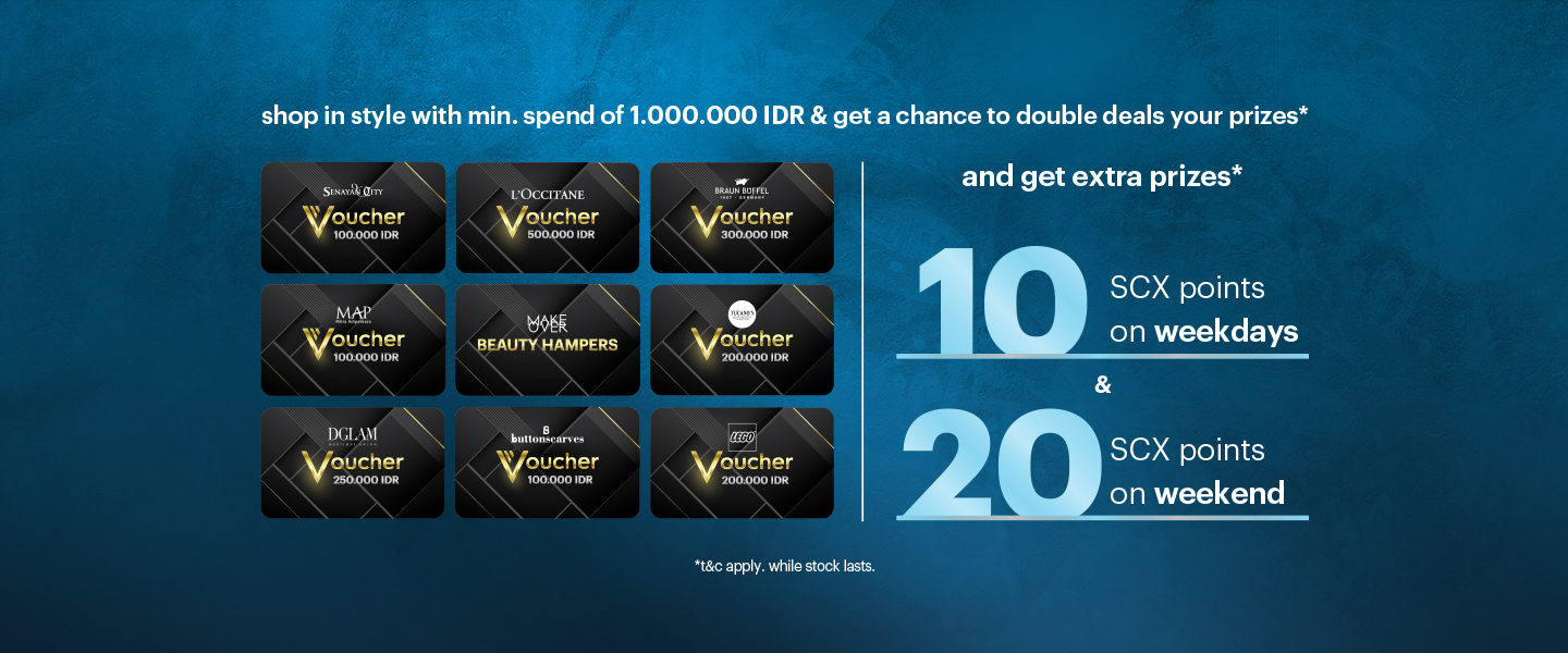 Shop in style with min. spend of 1.000.000 IDR & get a chance to DOUBLE DEALS your prizes*