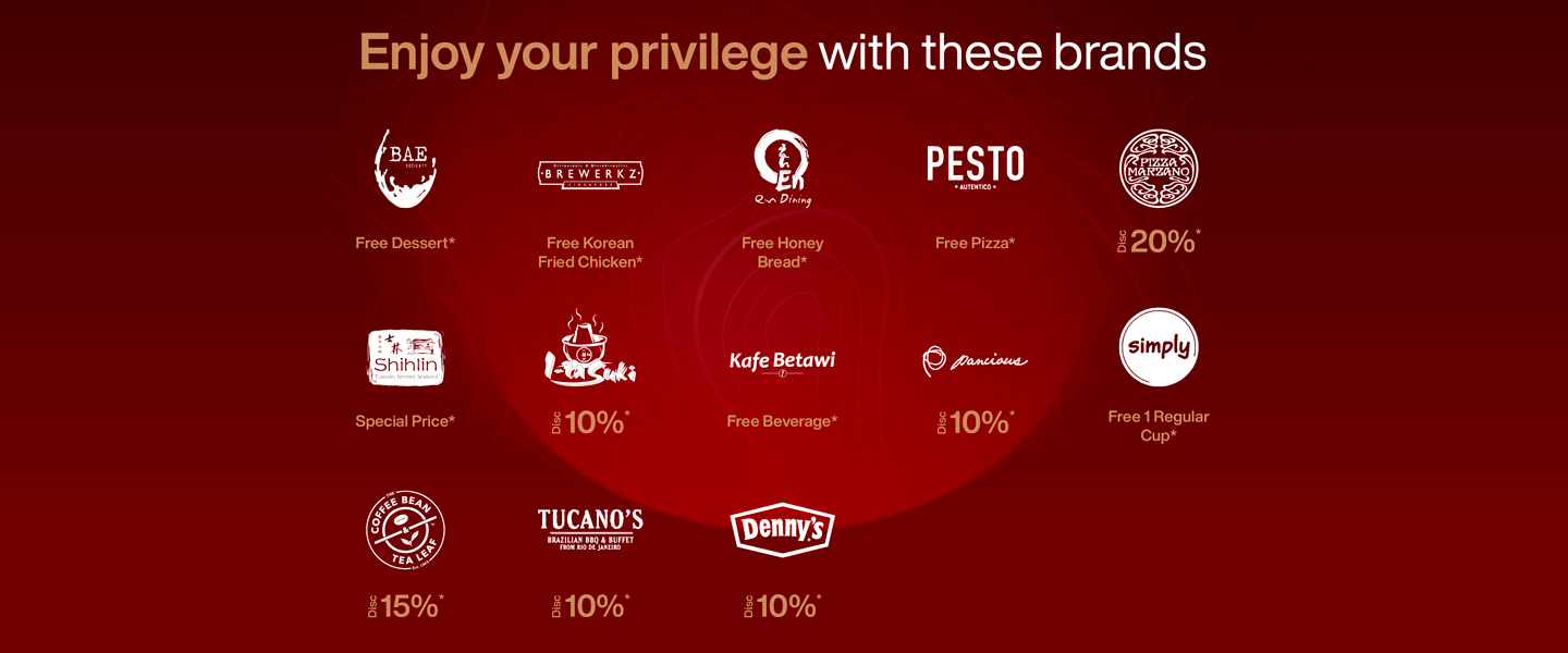 Enjoy your privilege up to 20% OFF* by Showing your SCX Membership at our Food & Beverage brand participants.