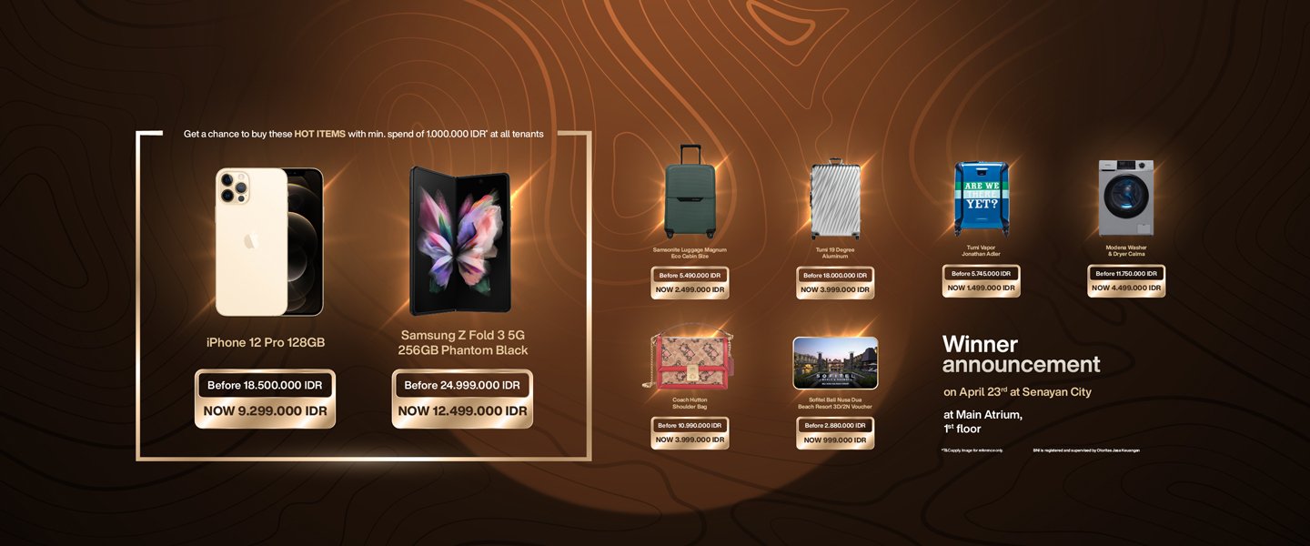 Get a chance to buy these HOT ITEMS with min. spend of 1.000.000 IDR* at all tenants