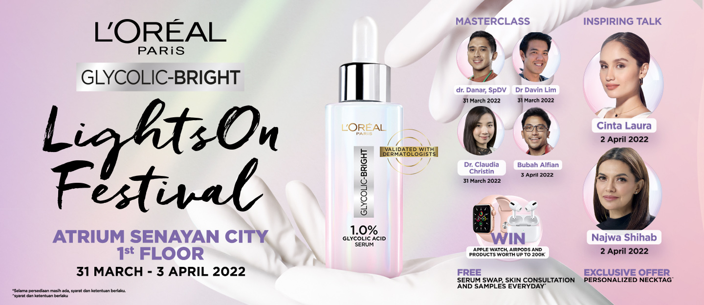 Have you checked the schedule, Ladies? Sudah buat jadwal kan untuk datang ke launching L’Oréal Paris Glycolic Bright #LightsOnFestival, di Senayan City?
