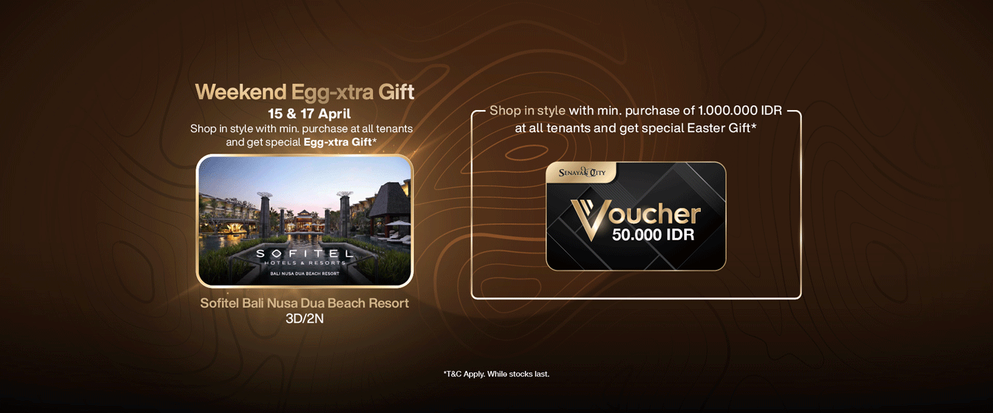 Shop in style with min . purchase of 1.000.000 IDR at all tenants and get special Easter gift*: