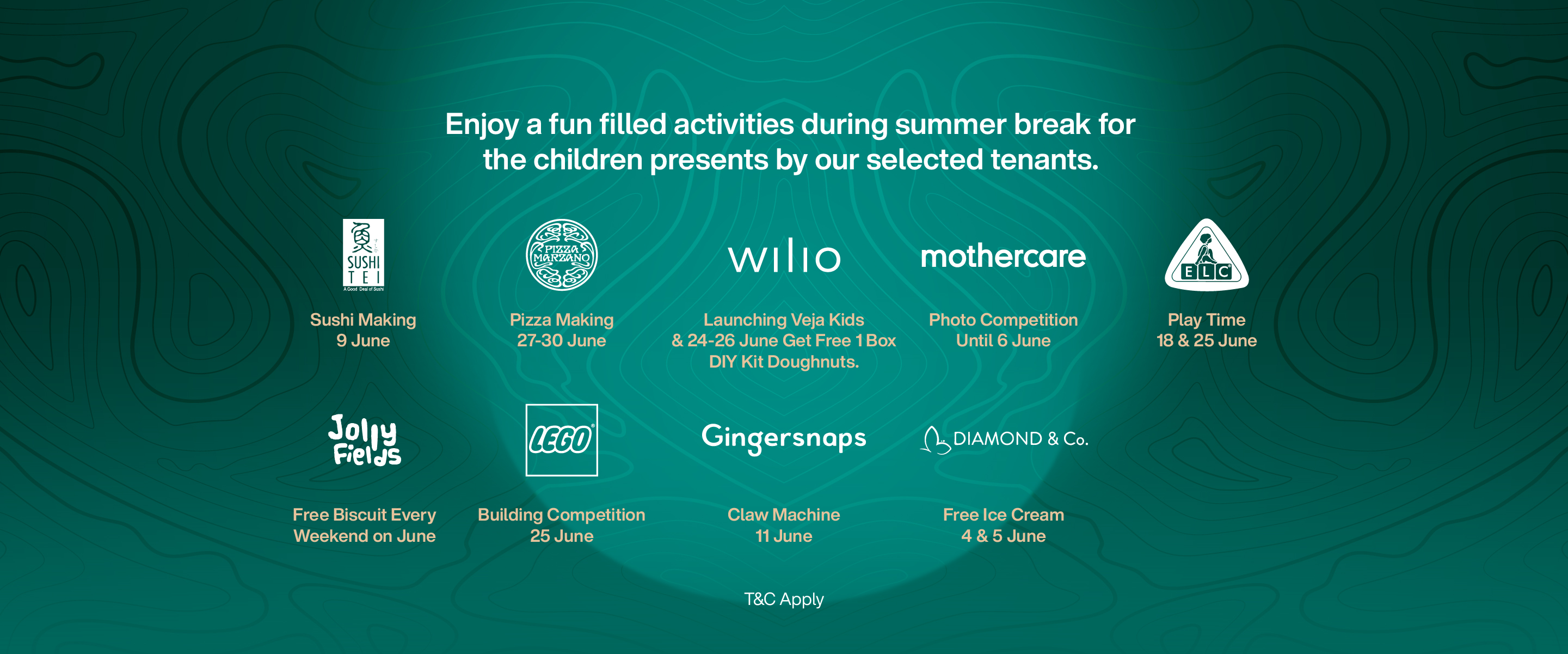 Enjoy a fun filled activities during summer break for the children presents by our selected tenants