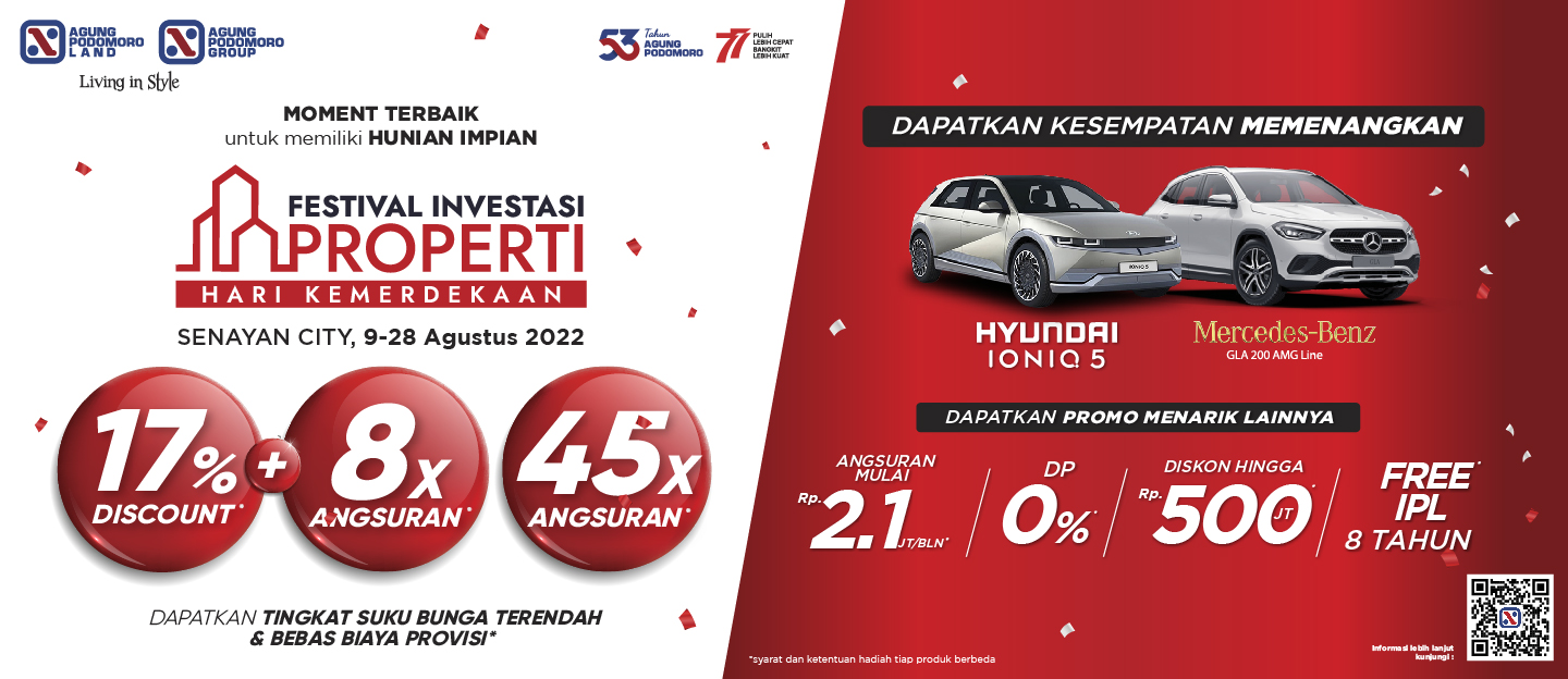 Nikmati Penawaran Special Hari Kemerdekaan dari seluruh proyek prestisius milik AGUNG PODOMORO di seluruh Indonesia.
