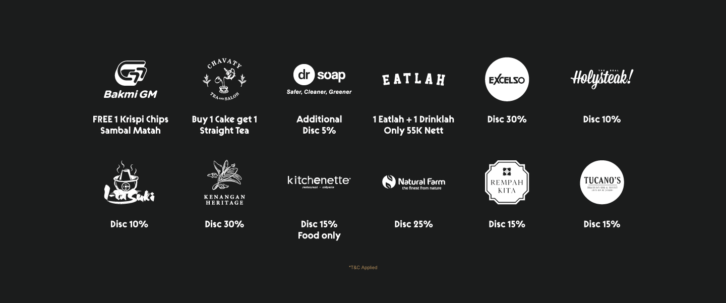 Show your ID Card and get special offers from our iconic tenant participants, for Senayan City complex only*