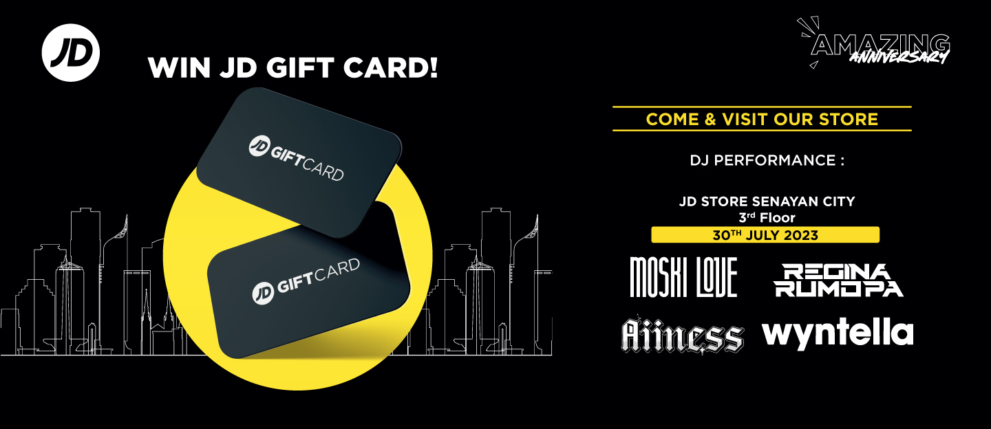 We’re keen to celebrate with YOU, join the social contest on @jdsportsindo Instagram to win JD GIFT CARD total IDR 10.000.000. Enjoy special DJ performances on 30 July starts from 12pm and shop the latest collection at JD Sports Senayan City – 3rd Floor. See you there!