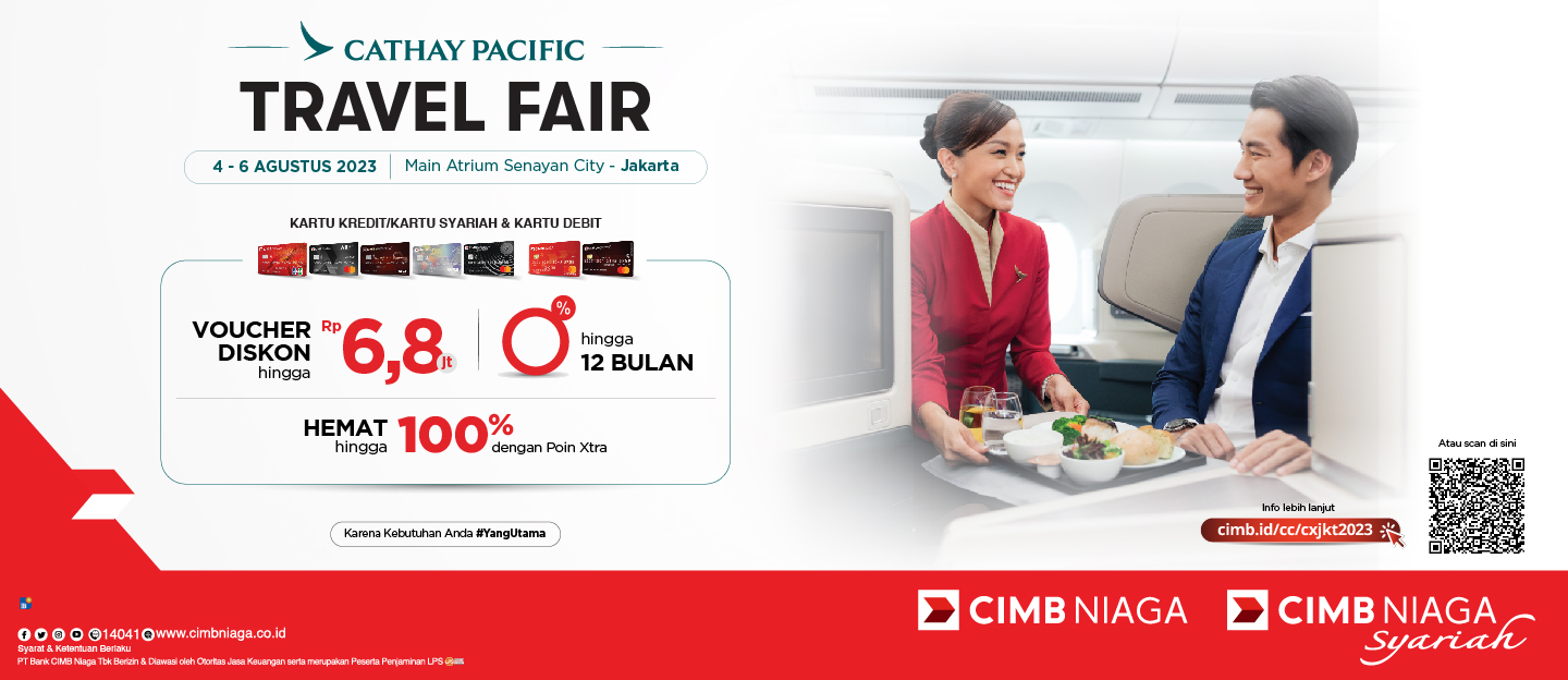 S&K Berlaku. Info lebih lanjut kunjungi cimb.id/cc/cxjkt2023 atau hubungi CIMB Niaga 14041.