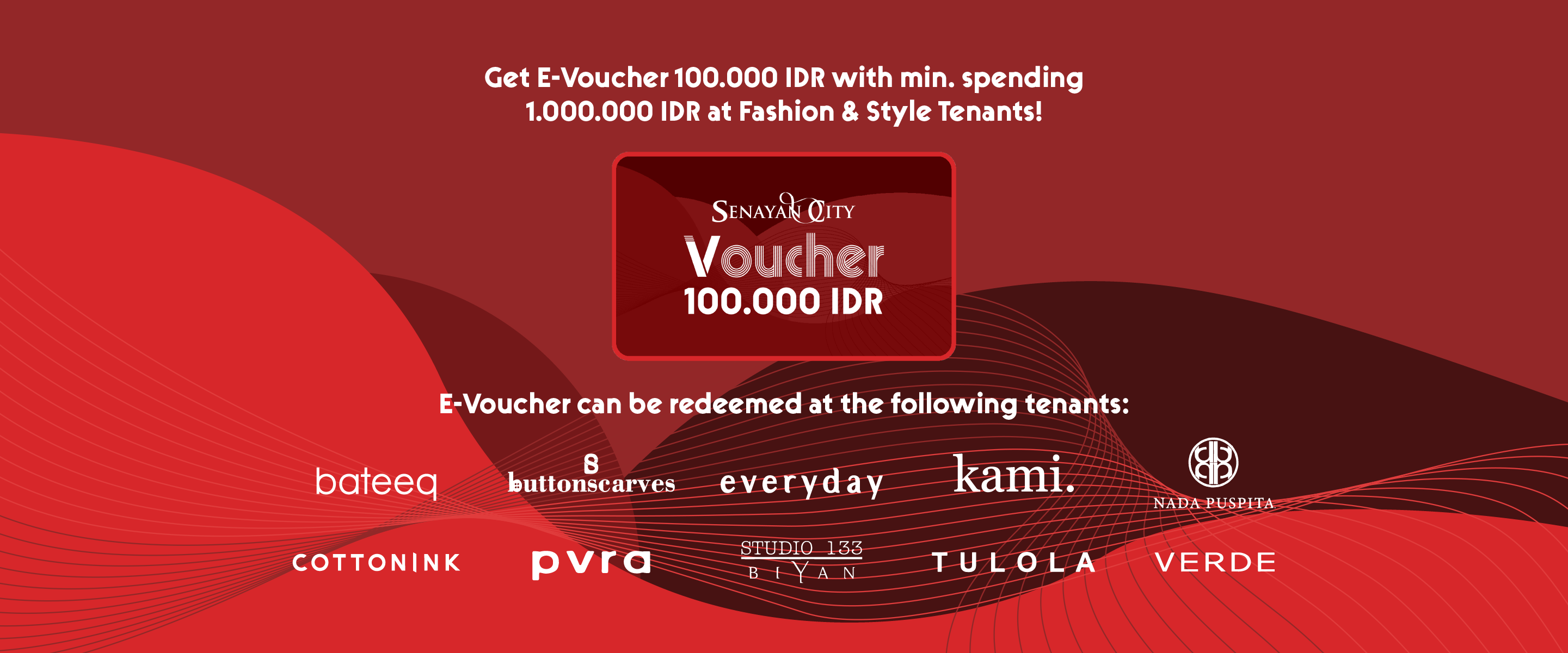 Get E-Voucher 100.000 IDR with min. spending 1.000.000 IDR at Fashion & Style Tenants!