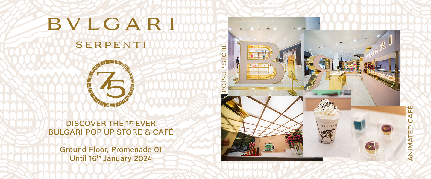 It's finally here, the first ever Bulgari Pop Up Store & Café! Ready to present you with all Bulgari's iconic collection along with a never-seen-before animated cafe in collaboration with Venchi and Bakerman.