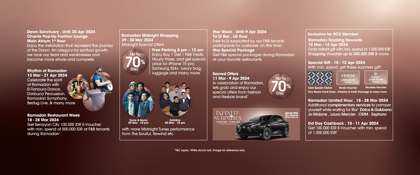 Get Senayan City 100.000 IDR E-Voucher with min. spend of 500.000 IDR at F&B tenants during Ramadan*