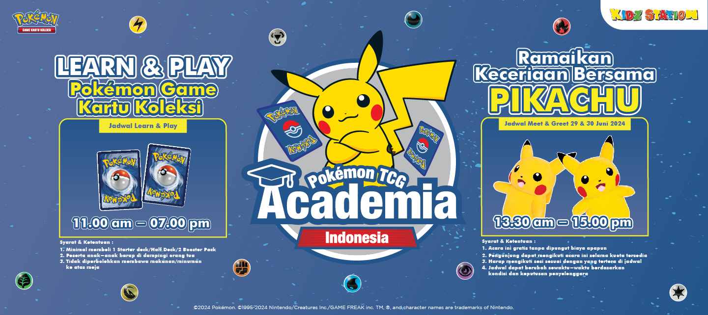 Jangan lupa juga untuk datang ke Kidz Station Senayan City tanggal 24-30 Desember 2023 untuk ikuti Learn & Play Pokémon TCG dengan mengikuti syarat dan ketentuan yang tersedia dan ikuti aktivitas seru bersama Pokémon dan juga Meet & Greet bersama Pikachu di Weekend ini Lho!