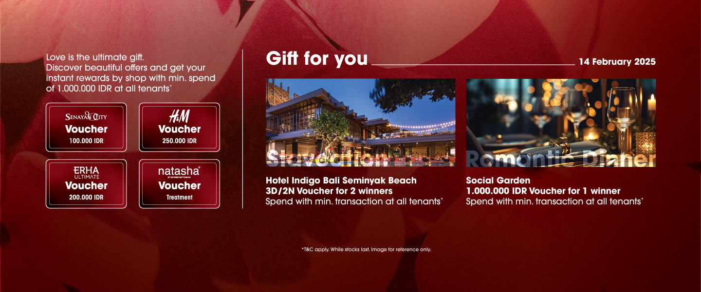 Discover beautiful offers and get your instant rewards by shop with min. spend of 1.000.000 IDR at all tenants*