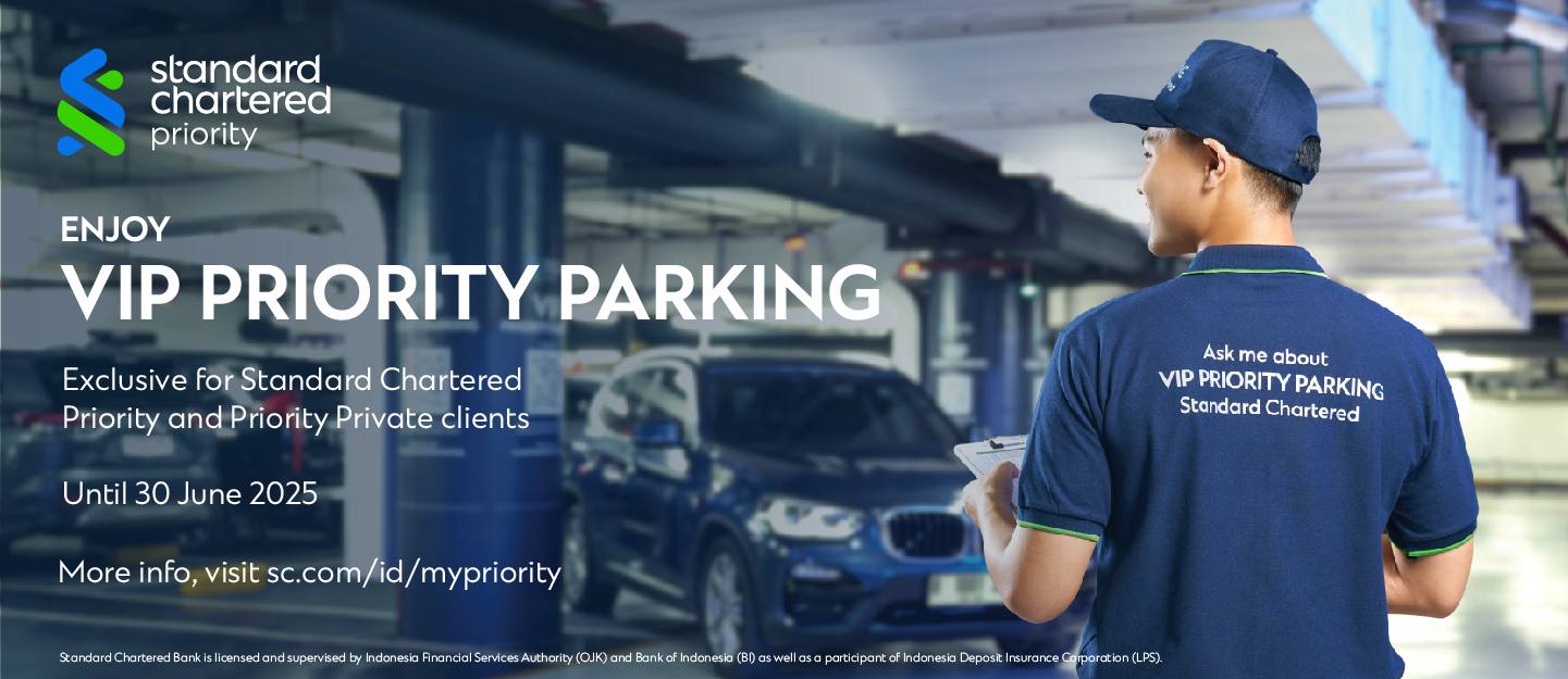 Exclusive for Standard Chartered VIP Priority Parking and Priority Private clients, enjoy free VIP PRIORITY PARKING at Senayan City, located at Parking Basement 1, area R6 - S6