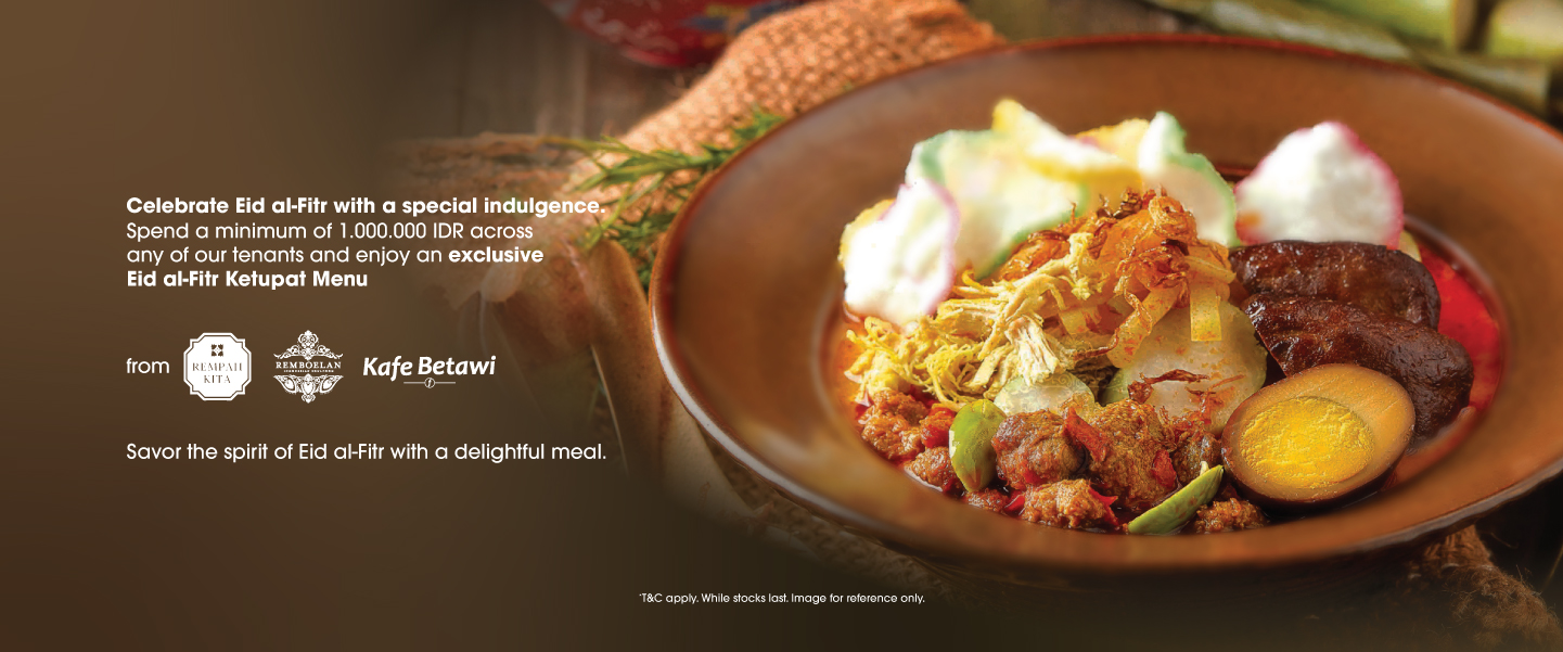 Spend IDR 1,000,000 across all tenants and unlock a refined Eid Day menu, thoughtfully made by Rempah Kita, Remboelan, and Kafe Betawi. 🍴 A celebration of exquisite flavors, perfect for marking this special occasion.
