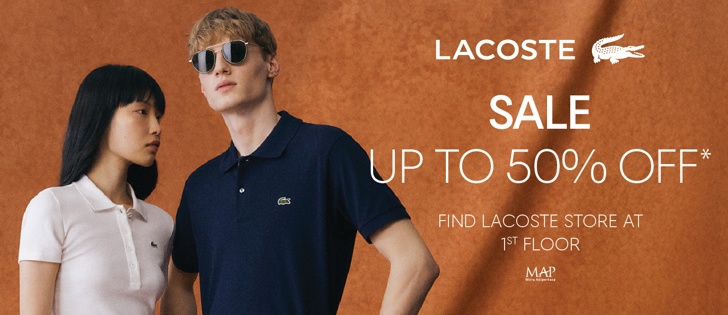 From everyday polos to court shoes — get up to 50% OFF on Lacoste essentials. Available in Lacoste Senayan City 1st Floor. Shop now!