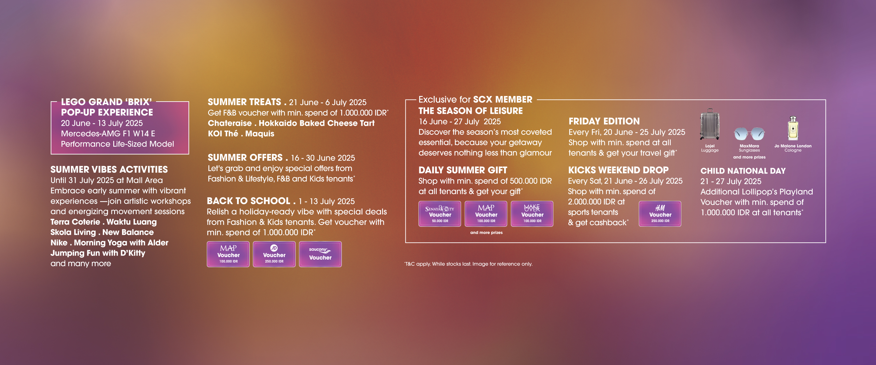 From exciting shopping rewards and fun kids' promos to art workshops and energizing workouts—this summer, experience it all at Senayan City.