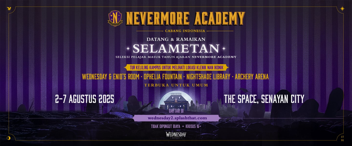 Masuk ke dalam dunia Wednesday dan ikuti acara orientasi SELAMETAN dari Nevermore Academy Cab. Indonesia untuk menyambut Wednesday 2.