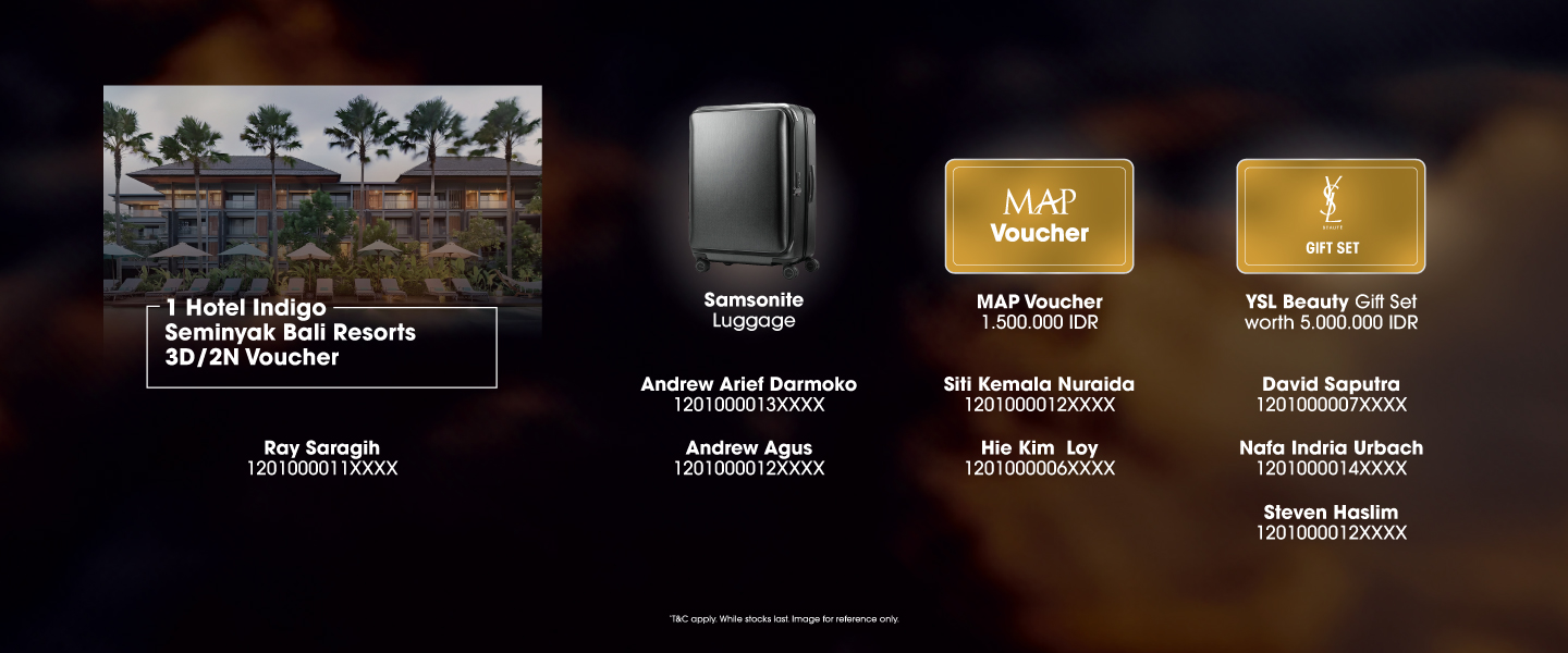 Please claim your reward at Management Office Senayan City by the latest on 8 August 2025, Mon-Fri at 10AM-12PM & 2PM-4PM (except on Sat-Sun and public holiday).