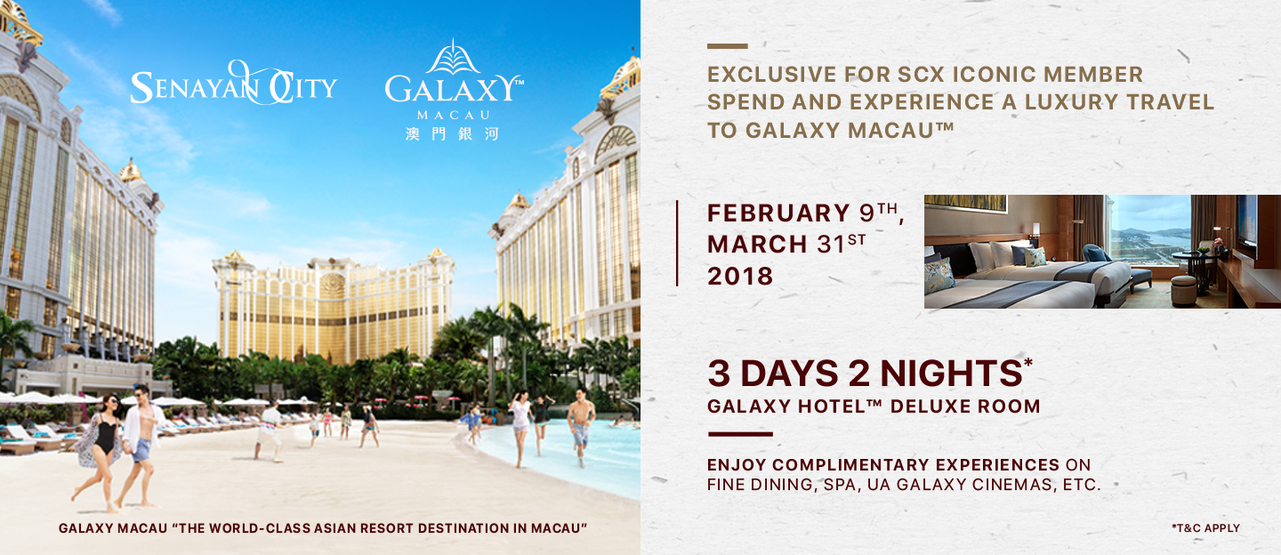 EXCLUSIVE FOR SCX ICONIC MEMBER! SPEND & EXPERIENCE A LUXURY TRAVEL TO GALAXY MACAU™ - "THE WORLD - CLASS ASIAN DESTINATION RESORT IN MACAU"